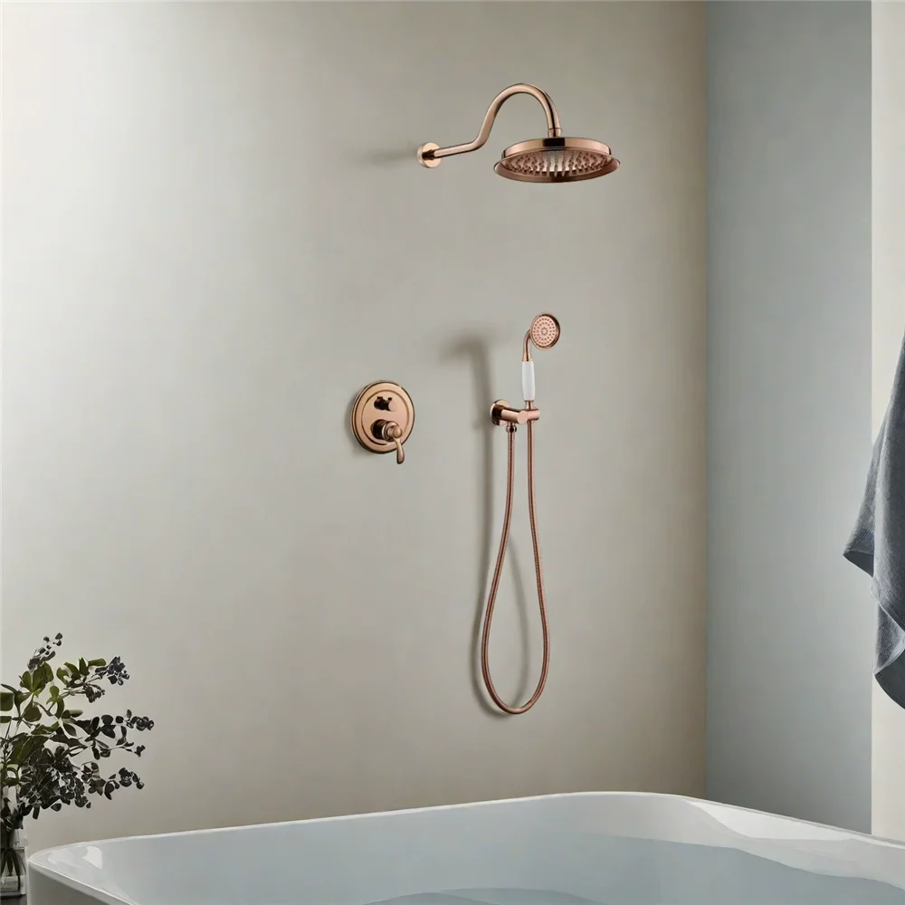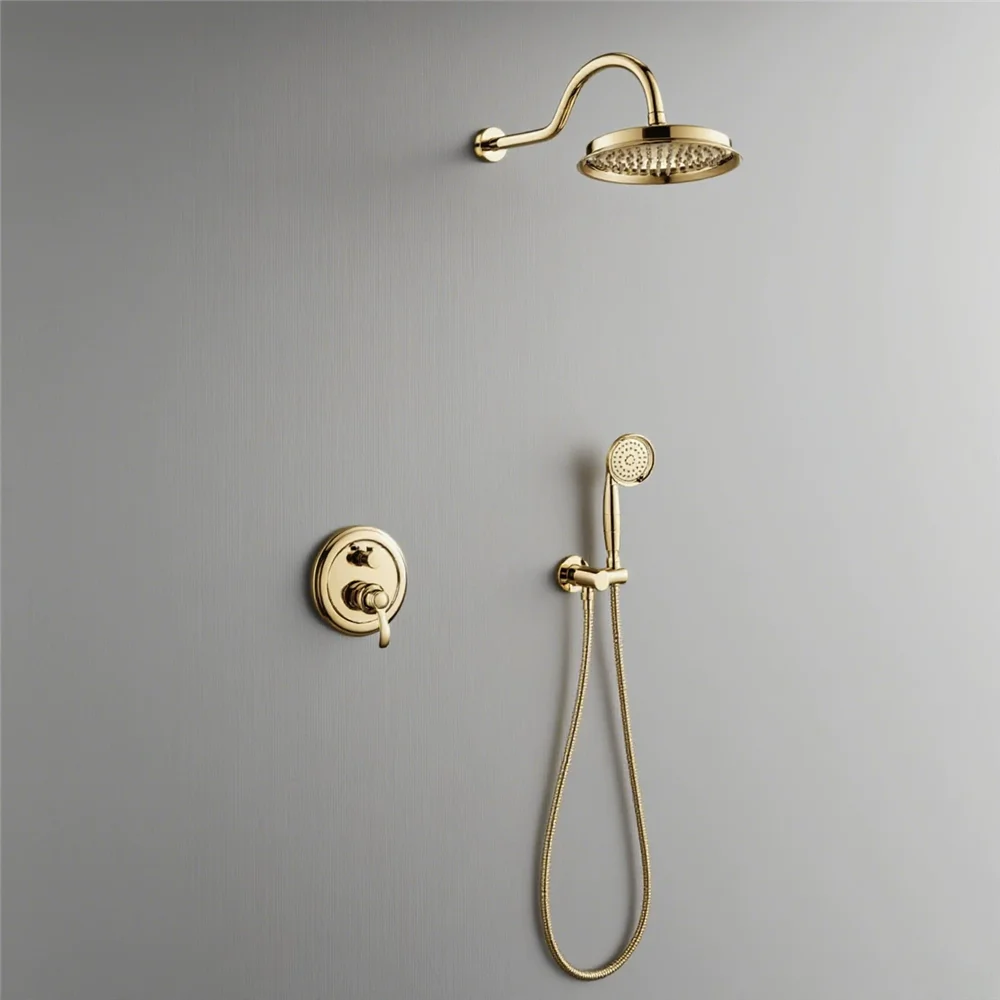 Antique Rainfall Shower Set Wall Mounted Brushed Gold Shower Faucet Set Total Brass Rose Gold Bath & Shower Mixer Tap Brass