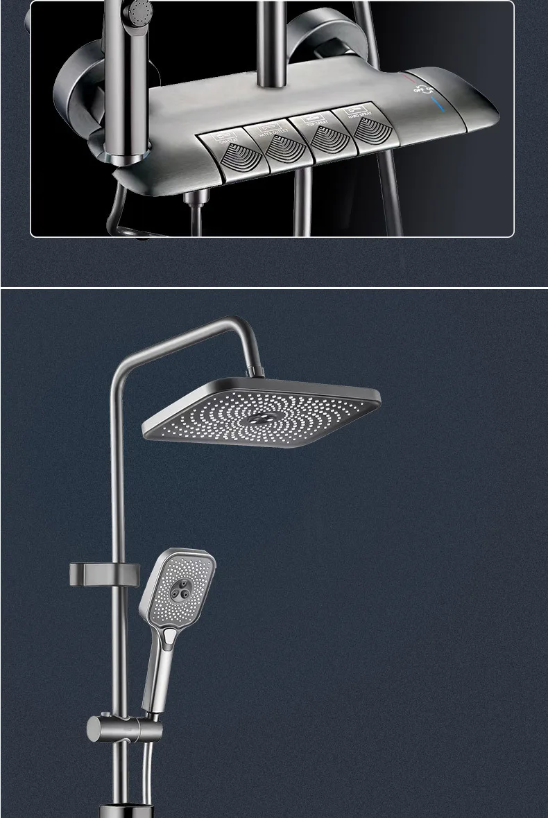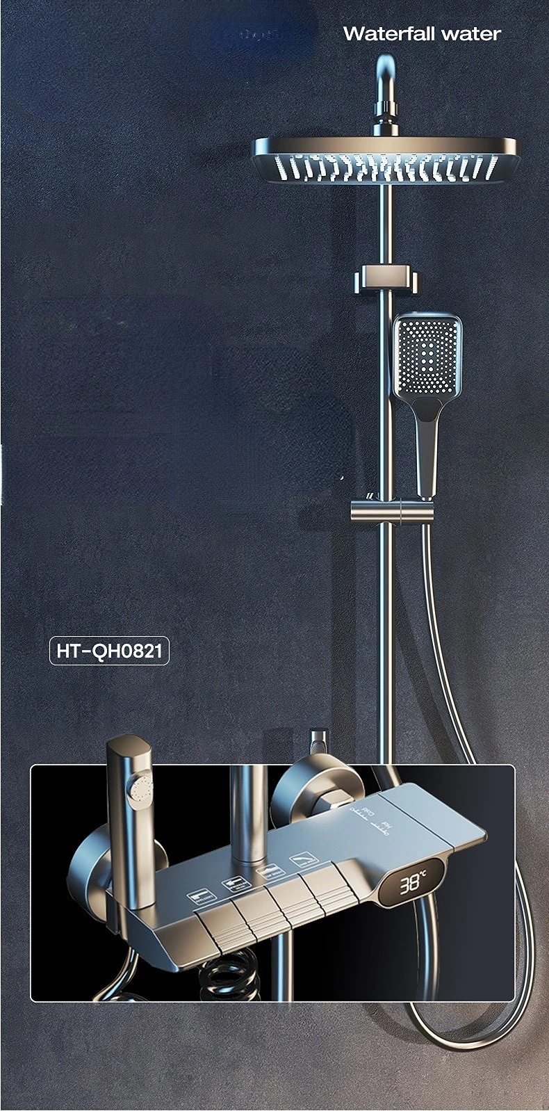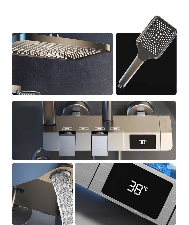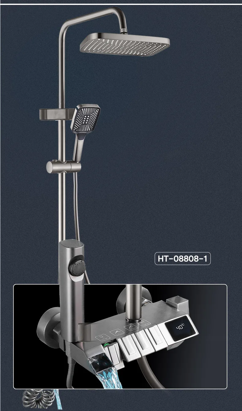 Grey Digital Shower Set Intelligent Brass Bathroom Faucets Hot Cold Waterfall Tap Rainfall Piano Design Shower System