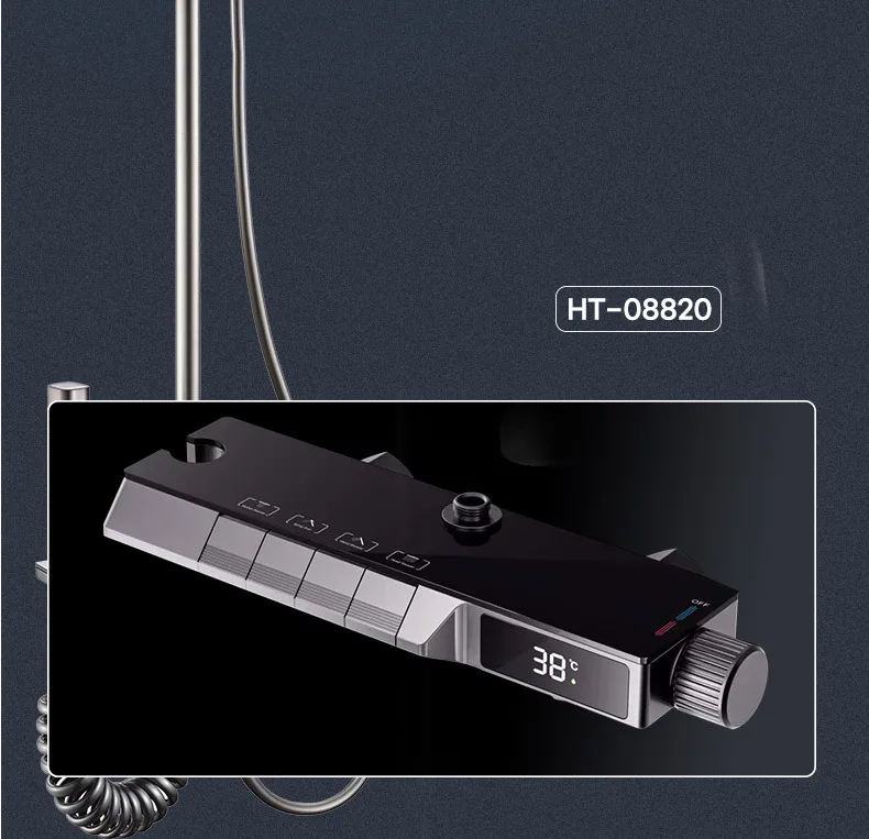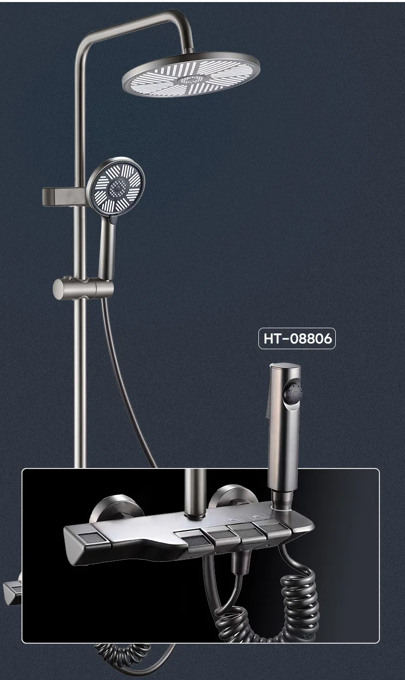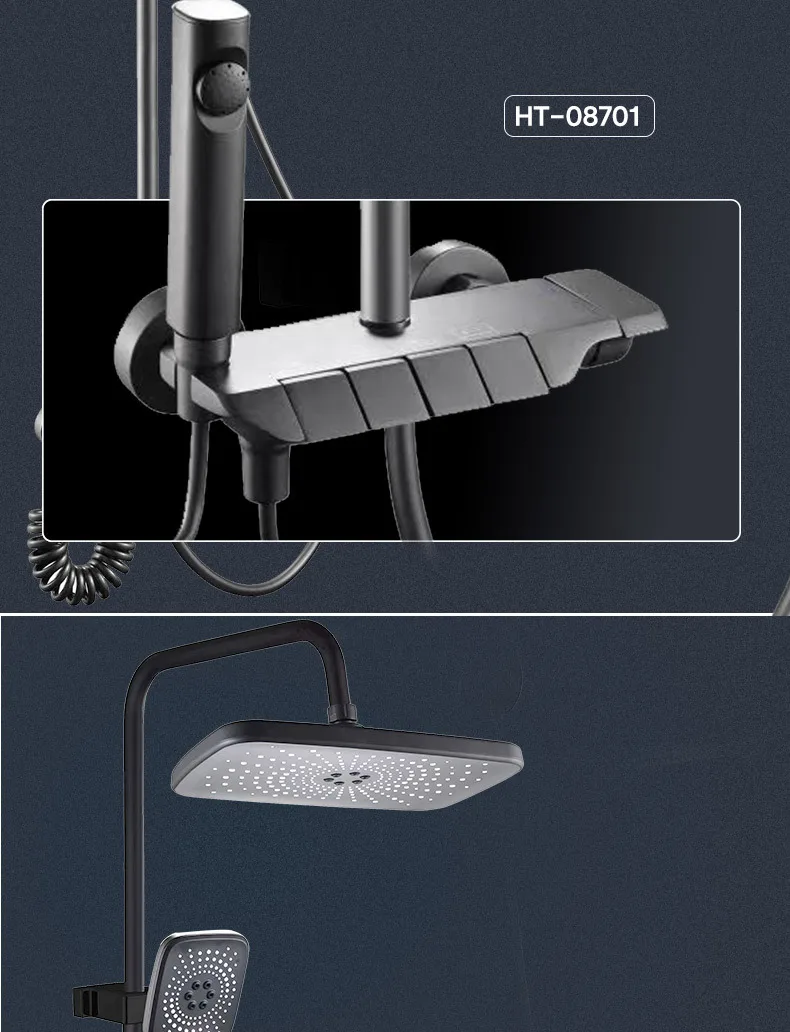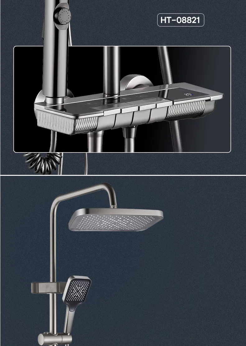 Grey Digital Shower Set Intelligent Brass Bathroom Faucets Hot Cold Waterfall Tap Rainfall Piano Design Shower System