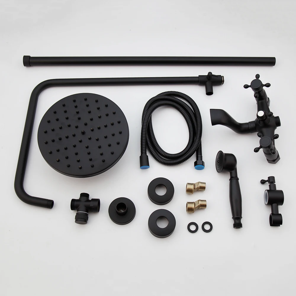 KEMAIDI Bathroom Black Shower Set Wall Mounted 8" Rainfall Shower Faucet 3-functions 2 Cross Handles Solid Brass Shower Fixtures
