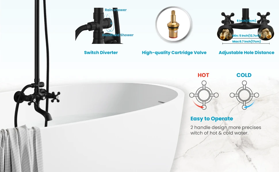 【Adjustable Adapter】: The hole distance on the wall is 5.9 inch(15 cm) around,coming with adjustable adapter(Npt 1/2“) to allow the shower faucet installation hole distance between 5 inch - 6.6 inch (13cm-17cm);which is easier for installation.