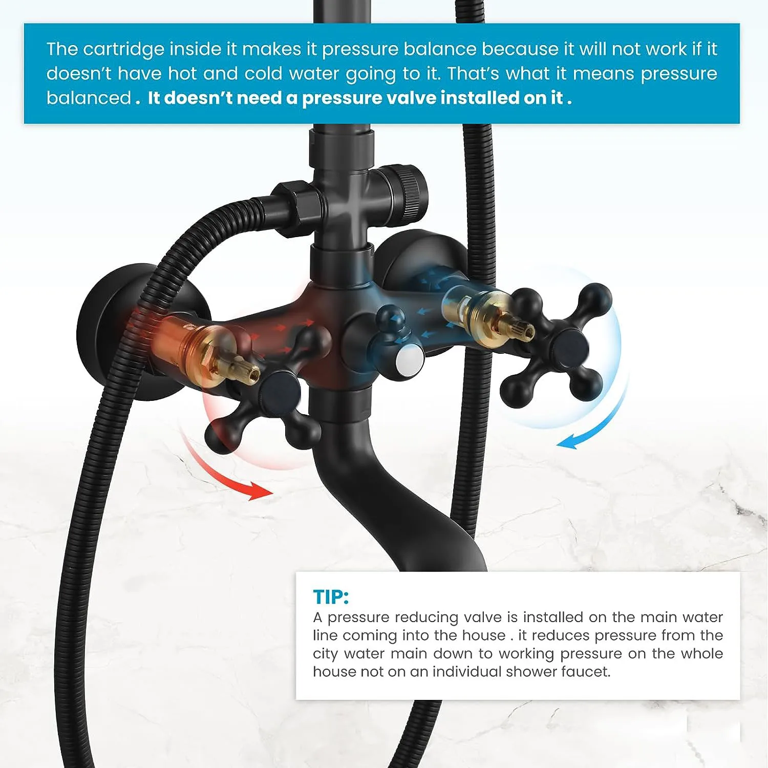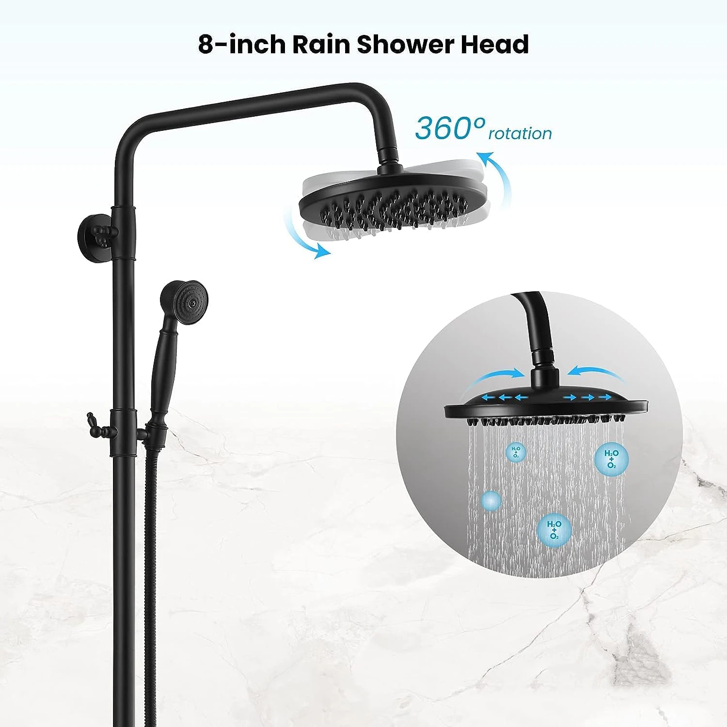 【Dual Function Design】 : This exposed shower system has 8 inch rain shower head and handheld sprayer with 1.5m shower hose .Meet your different requirement ;Note: it also could be outdoor shower fixtures.
